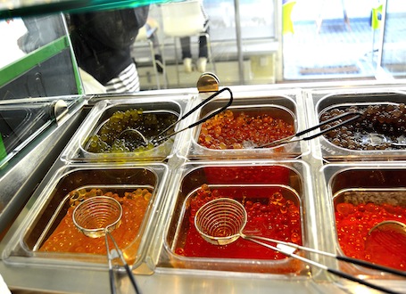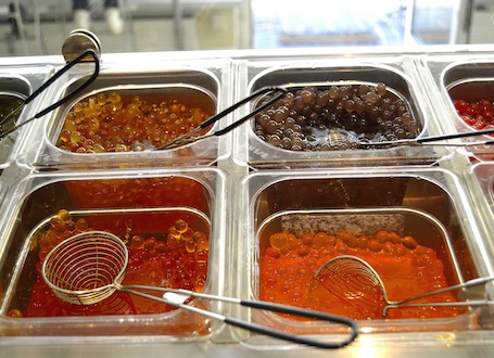 Men det er ikke det hele. I teen skal man så have sine bobler – tapioka bobler nærmere bestemt. Tapioka er en lille kartoffellignende rodfrugt, der bruges meget i asien. Drikken drikkes med sugerør, og inde i kuglerne er der frugtsirup med forskellige smage. Man kan også få gele i. Det er enten som kugler eller stykker og har også frugtsmag.