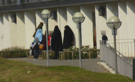 De lokale medier har igen omtalt bebyggelsen. Men slet ikke for det, der slår mig, da jeg kommer cyklende: en stor del af kvinderne er denne lune sensommerdag klædt fra top til tå i sort muslimsk klædedragt.