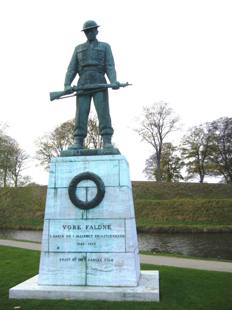 5. maj 1960 blev Svend Lindharts bronzestatue ”Vore faldne i dansk og allieret krigstjeneste 1940-1945, rejst af det danske folk” afsløret af Kong Frederik den IX. Skulpturen af soldaten er placeret i Churchillparken ved indkørslen til Kastellet. Roland Olsen og De Allieredes Danske Våbenfæller havde taget initiativ til opsætningen tilbage i 1955. Modellen af soldaten var færdig i efteråret 1956. Et nærstudie vil måske afsløre en lighed mellem Roland Olsens ansigt og soldatens ansigt?