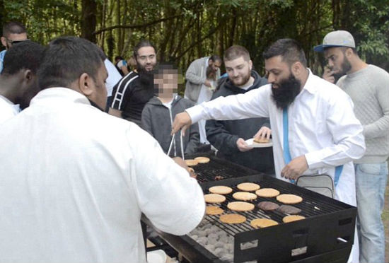 Abu Waleed gør, hvad han kan, for at skaffe flere proselytter. Billederne her viser ham, mens han er i gang med at dele materiale ud og servere grillbøffer (halal) i Wales’ hovedstad Cardiff. Det foregår, som man kan se, helt åbenlyst under ISIS’ flag.