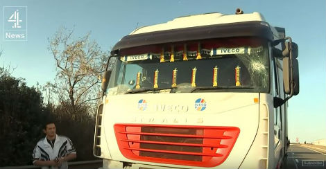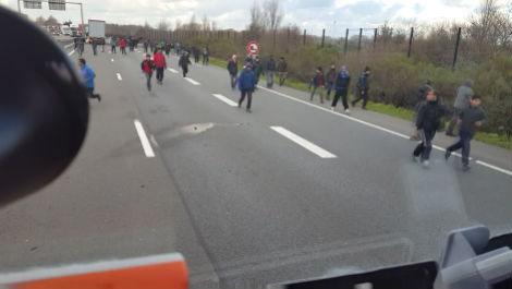 Horder af mennesker forsøger at stoppe lastbilerne, for at komme ombord. Frontruder bliver knust, der bliver kastet genstande ud på vejbanen, og det er livsfarligt at holde ind på rastepladserne i området omkring Calais.