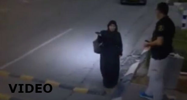 Kvinden som blev optaget på overvågnings-kameraet  foregiver, at ville ind i den jødiske bydel  Beitar I Illat på Vestberedden. Men hun har en stor kniv i tasken, og mens vagten kontrollerer hendes identitetskort tager hun den frem og går til angreb på vagten.