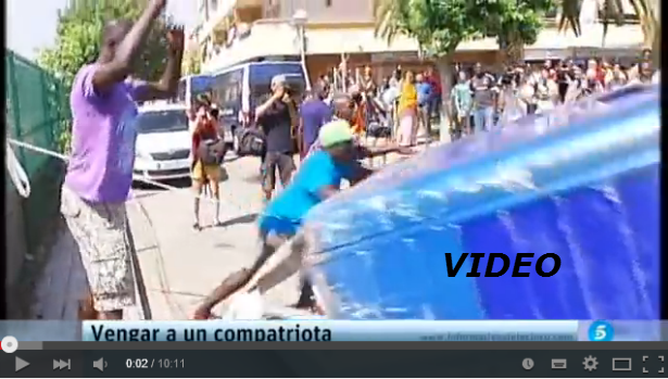 Stor gruppe afrikanere angriber politi og fodgængere i Spanien.