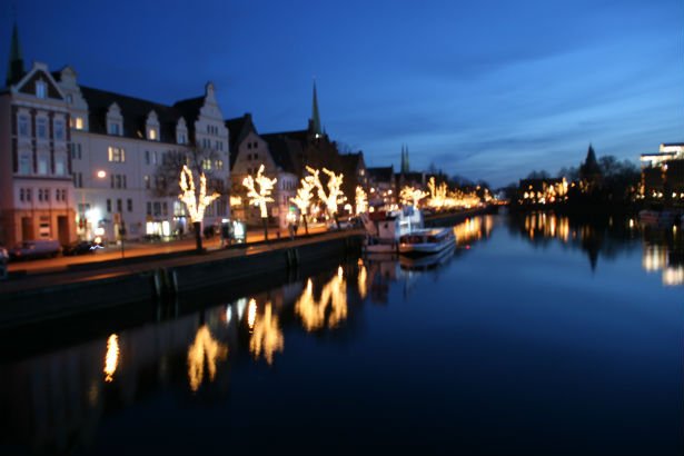 Den gamle hansestad Lübeck i moderne jule klæder.