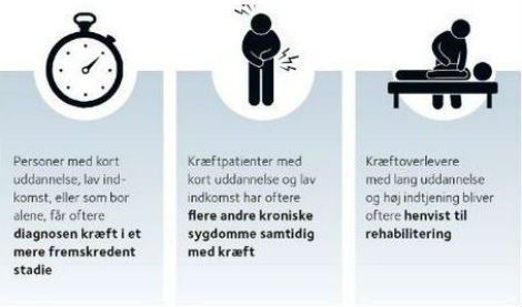 Her har forskerne gennemgået 139 undersøgelser blandt kræftpatienter i Danmark, og resultatet er tydeligt: Kræftpatienter med kort uddannelse, lav indkomst, minoritetsbaggrund, eller som bor alene, har ikke i samme grad som bedre stillede kræftpatienter gavn af de fremskridt, der er sket både i forebyggelse af kræft, diagnostik og behandling af kræft de seneste 30 år.