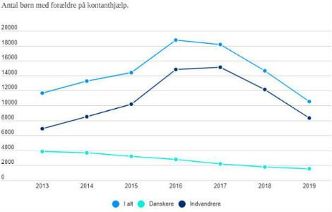 På trods af faldet i antallet af børn med forældre på kontanthjælp siden 2016, så er gruppen fortsat vokset, når man ser på tallene fra 2013 til 2019. Mens antallet af børn af danske forældre på kontanthjælp er faldet fra 3.800 til 1.600, så er børn af udenlandske forældre på kontanthjælp steget fra 6.900 i 2013 til 8.300 i 2019.