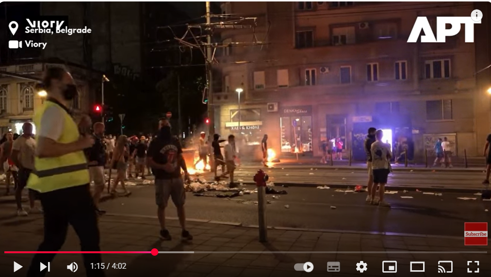 Måneders demonstrationer har denne uge udviklet sig deciderede gadekampe. I landets næststørste by, Novi Sad, trængte demonstranter torsdag ind i og raserede kontorer tilhørende regeringspartiet SNS (Serbian Progressive Party grundlagt af Tomislav Nikolić og den nuværende præsident, Aleksandar