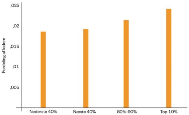 Jo højere ens karaktergennemsnit var til studentereksamen, jo større er sandsynligheden for at blive leder. Her ses det, at top-studerende (top-10%) er markant mere tilbøjelige til at nå en lederstilling sammenlignet med personer i den næstbedste karaktergruppe fra gymnasiet. (dem, der ligger mellem top-20 og top-10) ROCKWOOL Fonden