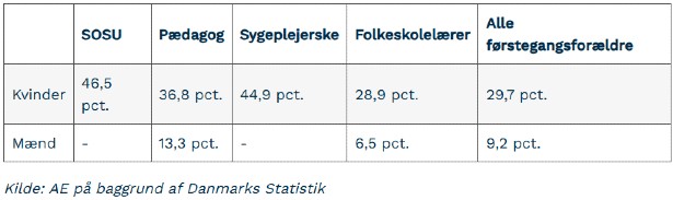 - Tallene peger på, at der i mange familier er et behov for, at den ene forælder går ned i tid, men det er oftest mødrene, der gør det. Forskellen i arbejdstid, der opstår, når man bliver forældre, er en af de vigtigste kilder til indkomstuligheden mellem mænd og kvinder.