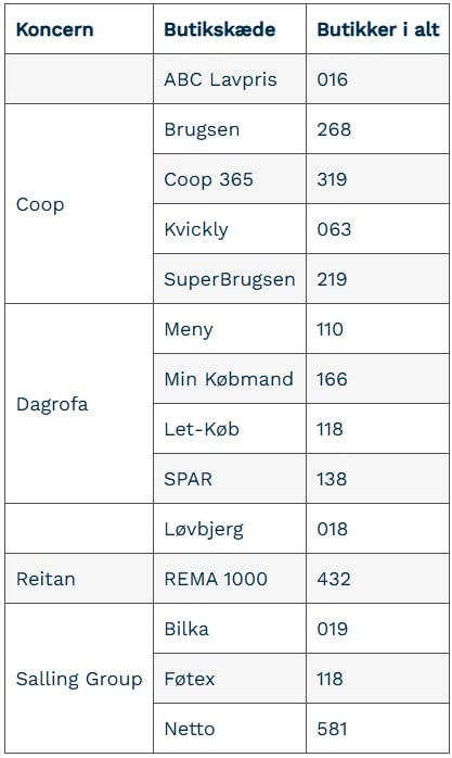 Butikker i kortbetalingsberedskabet[1]